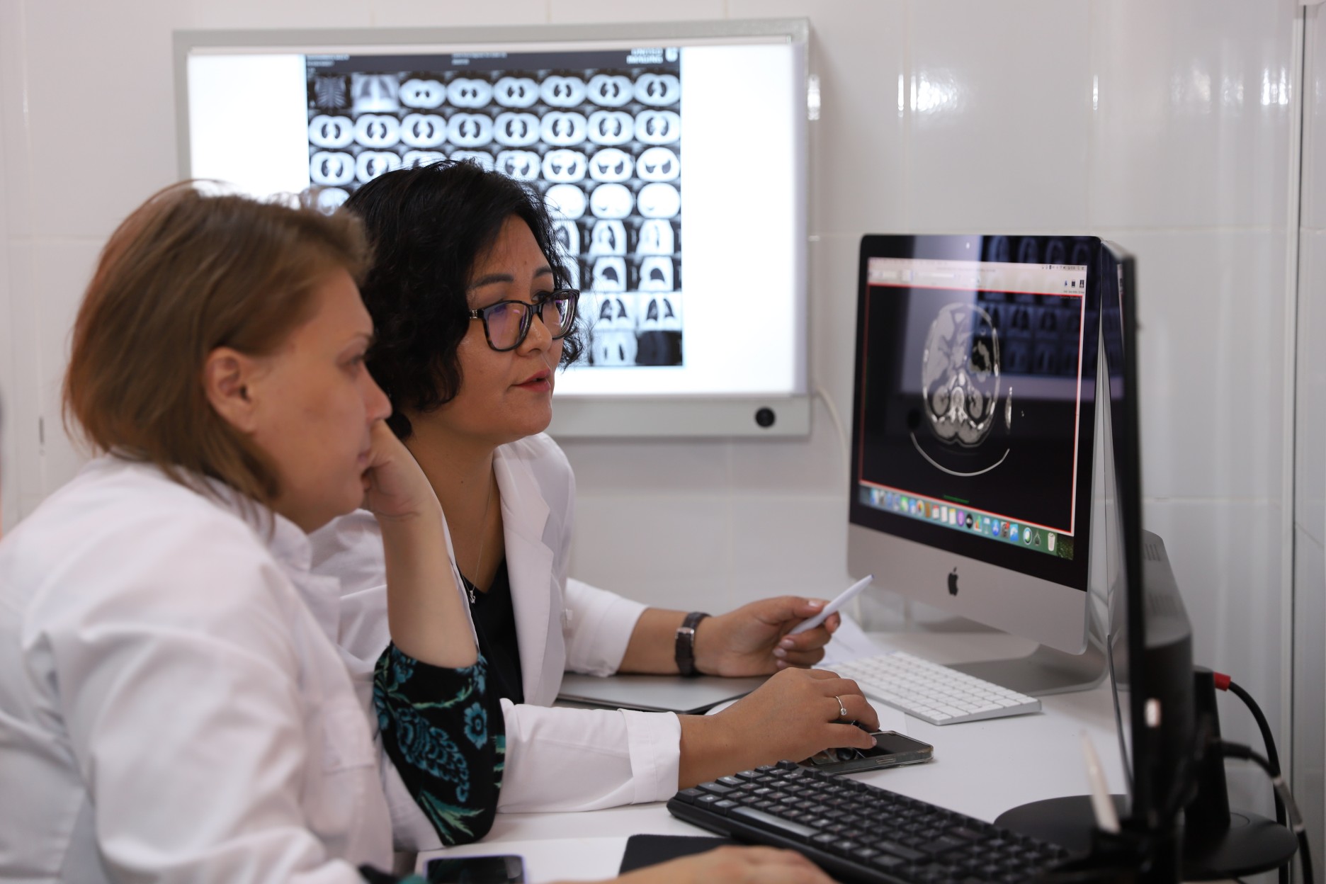 脱下白大褂,疾步迈下台阶,边冲向停车场,边冷静与电话线那头的技师沟通讨论阅片难题——哈萨克斯坦阿斯塔纳医科大学放射科主任查娜教授刚刚结束在市中心医院的工作,没来得及喘口气就驱车前往位于城乡交界的区域诊所,投身下一场“诊疗战役”。