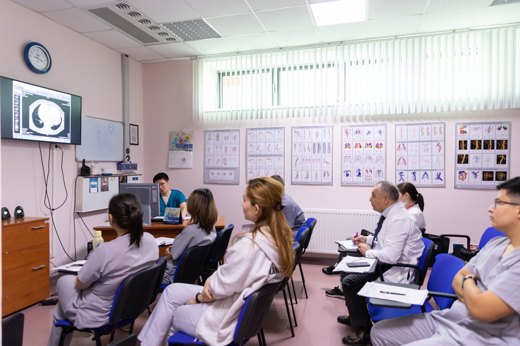 查娜教授与奥列格博士的追梦之旅中,塔耶勒罕教授是极为关键的“良师益友"。作为哈萨克斯坦放射学会副主席、国家心脏外科中心放射科主任,塔耶勒罕教授是哈萨克斯坦医界首屈一指的先行者和元老级人物。