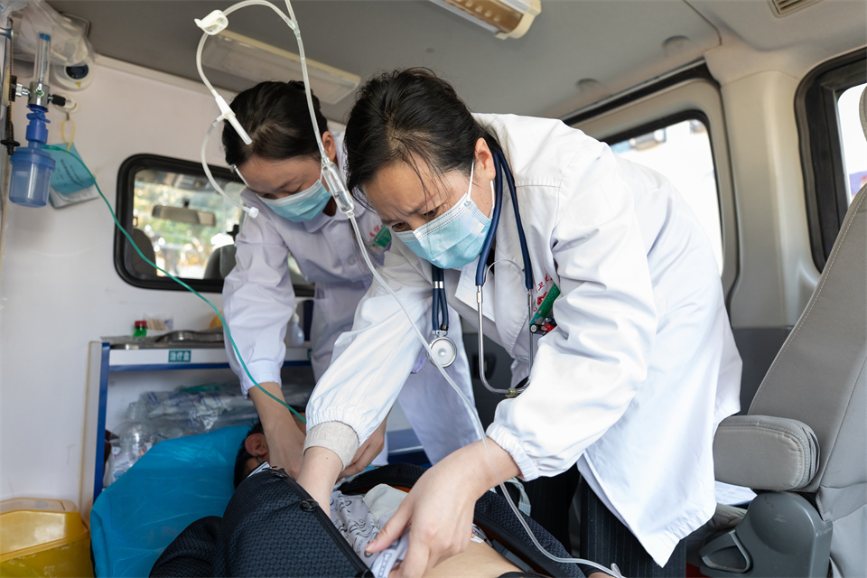 七星台镇卫生院医护人员正在为卒中患者进行抢救