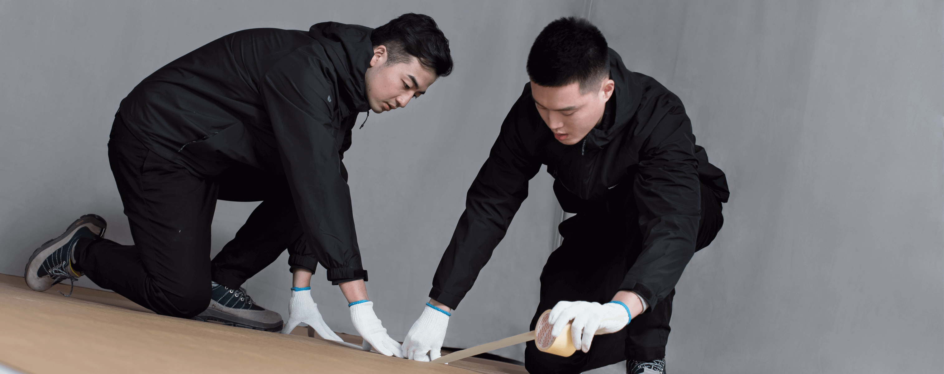 它厚实坚韧,拥有极强抗撕裂能力,且耐水、不易变形,被服务工程师细心裁剪成合适大小,保护客户的每一寸地坪,防止磨损、刮擦。